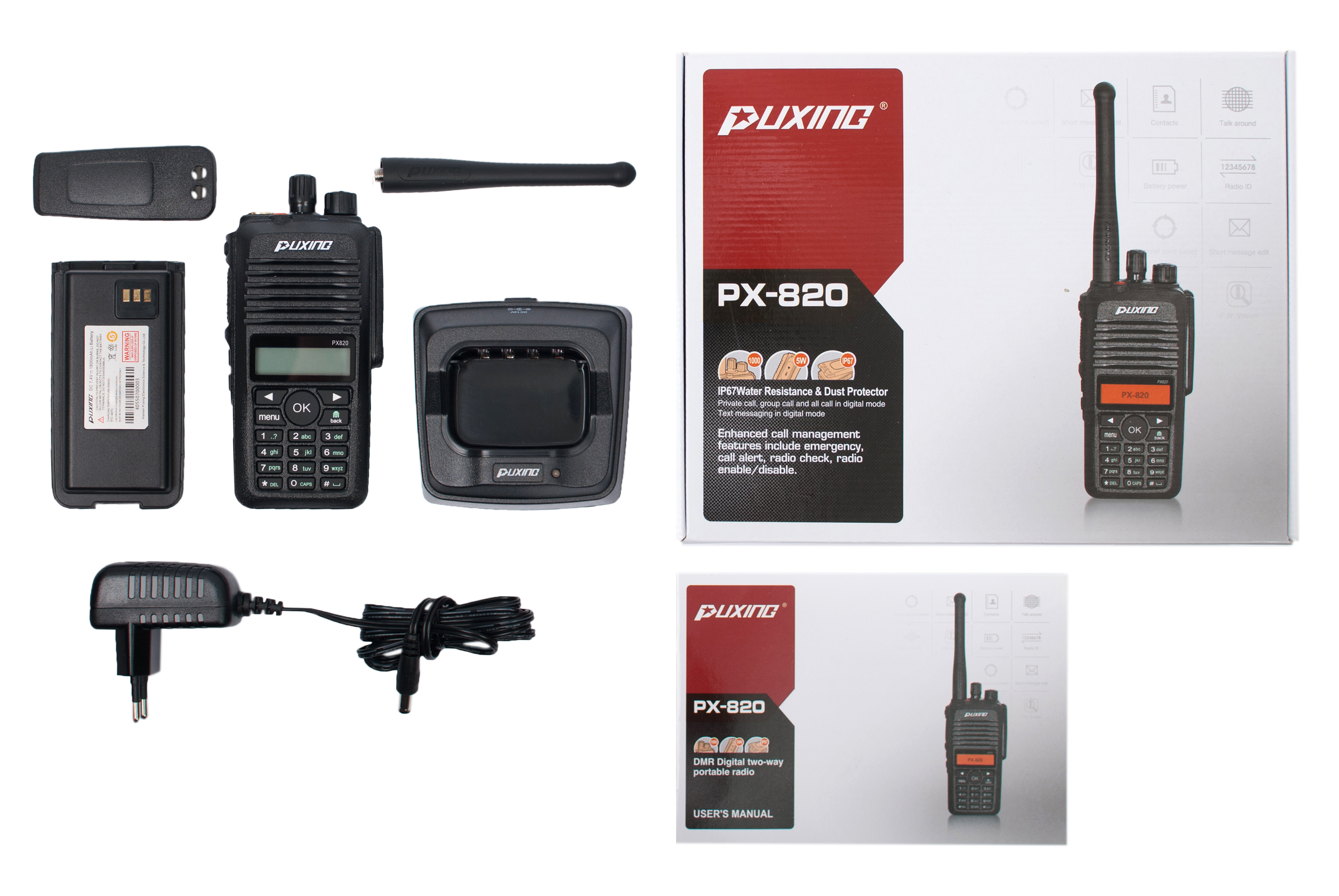 Puxing PX-820 має клас захисту IP67, завдяки чому може використовуватися в екстремальних умовах, під час рятувальних операцій у будівлях та на відкритій місцевості, під час злив та пожеж.